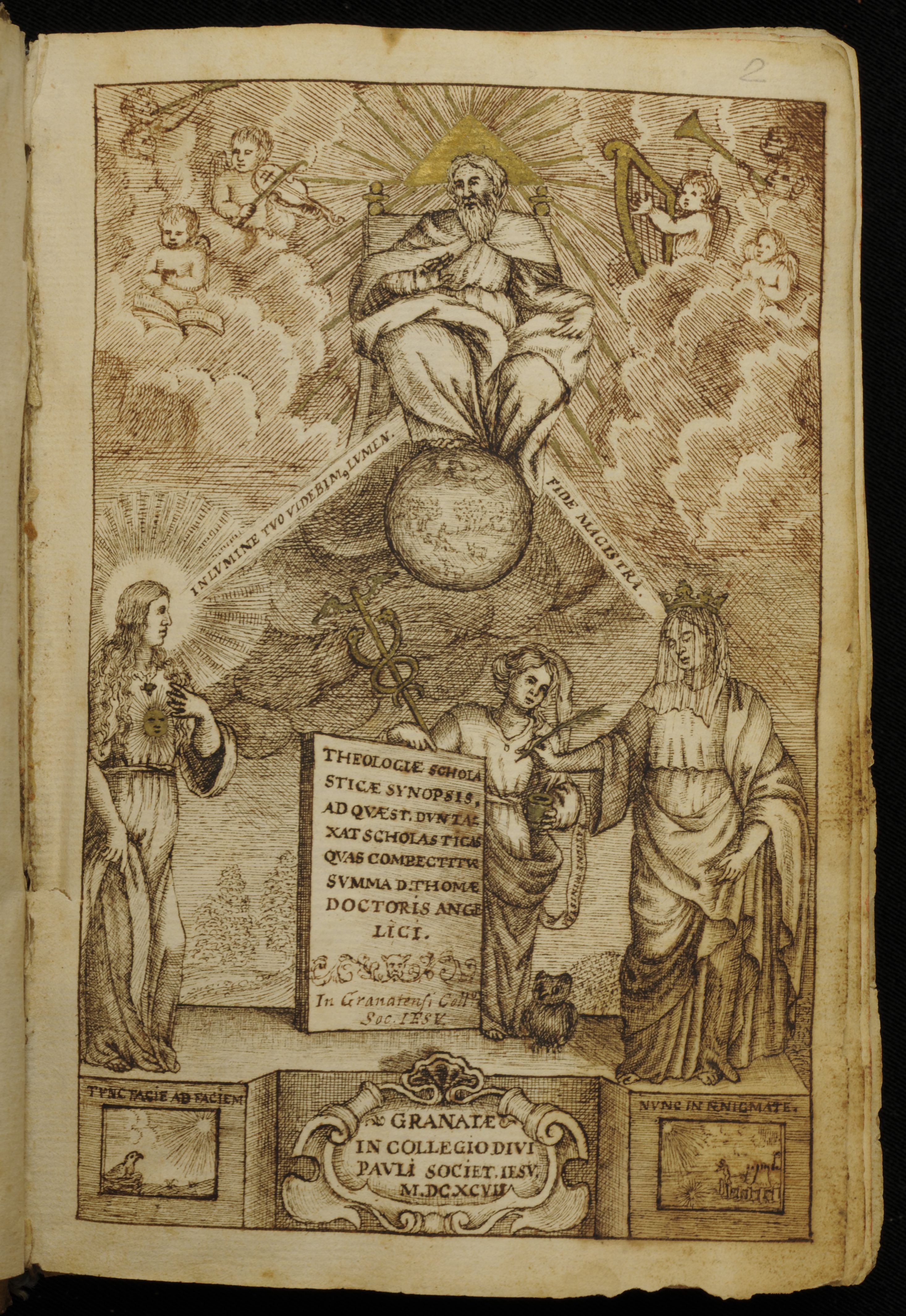 Durante il tirocinio svolto presso l’Archivio Storico della Pontificia Università Gregoriana mi sono rivolta in particolare all’analisi dei manoscritti con frontespizi decorati che hanno subito suscitato la mia curiosità dal momento che il frontespizio, elemento tipico del libro a stampa e pressoché assente nella produzione manoscritta, rende questi materiali di particolare interesse. Da qui è nata l’idea di realizzare una tesi su tale argomento circoscrivendo, però, il lavoro solamente ai codici del XVI e del XVII secolo, datati e non, e prendendo in considerazione frontespizi sia manoscritti sia incisi oltre a quei codici che, pur senza frontespizio, presentano delle illustrazioni o decorazioni interne. I manoscritti presi in esame e consultabili in MANUS appartengono al Fondo Curia e sono disponibili in questo elenco. Dall’analisi dei singoli manoscritti, inoltre, è emerso che in particolari casi la realizzazione dei frontespizi incisi a bulino è affidata ad artisti di fama, quali ad esempio: Francesco Villamena per F.C. 1019, Cornelis Galle il Vecchio per F.C. 1255, Josè Vallès per F.C. 476 e un probabile Matthäus Greuter per F.C. 136.