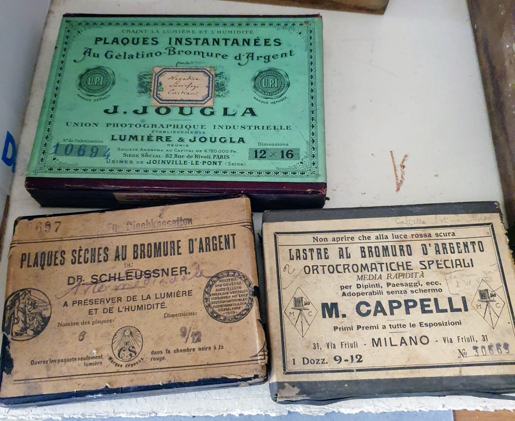 Centinaia di lastre di vetro alla gelatina di bromuro di argento. Qualcuno, tra la fine del XIX secolo e inizio del XX, le ha fatte per qualche scopo, altre mani le hanno saputo conservare fino al momento in cui altre, che non sono riuscite a ritrovare il senso della loro conservazione, le hanno abbandonate in uno scantinato. La catena conservativa ha ripreso a funzionare quando, qualche mese fa, sono state riportate in archivio.