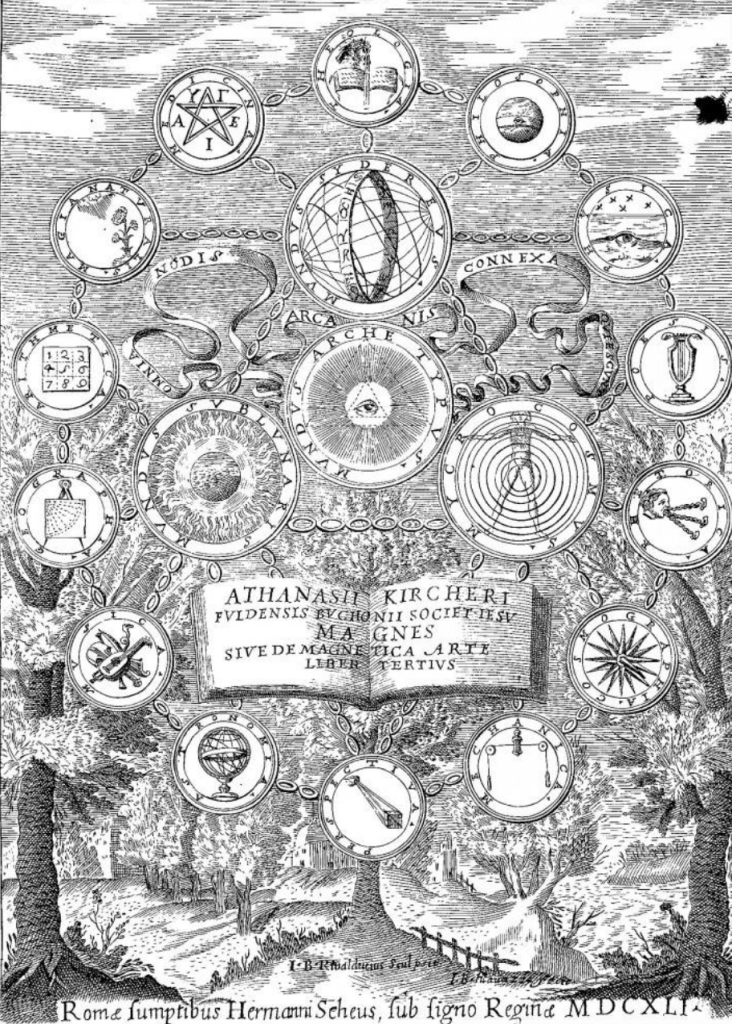 Omnia nodis arcanis connexa quiescunt, farà incidere Athanasius Kircher nel frontespizio del suo Magnes, sive de arte magnetica opus tripartitum (1641). Precisamente il linguaggio ermetico sarà funzionale a questo sforzo di mantenere la interconnessione tra tutti i nodi dell’unico mistero. Non per niente la scrittura geroglifica, così come allora la si concepiva, svegliava così grande interesse. Secondo il glottologo Carl Abel (1837-1906) in questo linguaggio molte parole sono composte di opposti: delizie per la comunicazione paradossale di quei tempi, ma anche per i nostri, davanti all’inafferrabile complessità. Fenomeno di enantiosemia, notato da Sigmund Freud nel Significato opposto delle parole primordiali (1910), utile per spiegare il lavoro onirico.