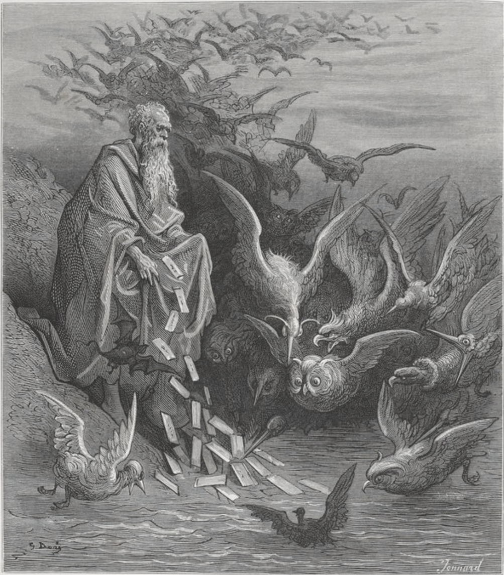 Un passaggio dell’Orlando furioso di Ludovico Ariosto (canto 35) permette di considerare, invece, l’archivio non come un deposito di memoria ma come uno spazio in cui si realizza la dialettica tra la memoria e l’oblio. Il personaggio centrale, il duca Astolfo, contempla la visione di un anziano (il Tempo) che getta nel fiume Lete le piastre incise con i nomi di coloro ai quali le Parche hanno tagliato il filo della vita. Corvi e avvoltoi cercano di recuperarne alcune, ma solo due splendidi cigni bianchi possono ripescare qualche nome dall’oblio. Gli archivi, i suoi cataloghi, i suoi strumenti di indicizzazione servono per dimenticare e così liberare i sistemi psichici e il sistema sociale da una massa ingombrante di memoria che non permetterebbe di elaborare le informazioni. L’archivio è a disposizioni di quei rari cigni bianchi che, sorvolando il fiume Lete, sono costretti a selezionare qualche documento e a tralasciare il resto.