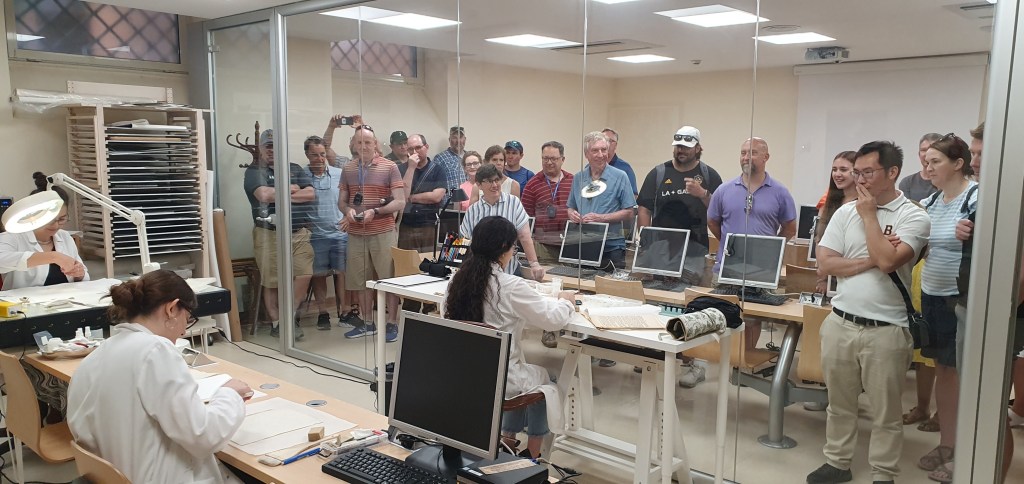On June 28, we had the pleasure and joy of sharing our treasures with a group of students and teachers from the Institute for Advanced Jesuit Studies of Boston College, accompanied by Fr. Casey Beaumier SJ. It was exciting to remember together the history of the archive of the Gregorian University: for more than two centuries, it was a center of cultural irradiation, educating priests, laypeople, and missionaries who reached the ends of the known world. Hidden during the times of persecution of the Jesuit order, it began to be used in the middle of the 20th century. The challenge is always to bring to light this exciting story to save memory and thus help us reflect on our present. Thanks to the visit of this group, it will be possible to initiate a series of diagnostic and conservation processes of an important 18th-century codex. Thank you very much, dear friends, and arrivederci.