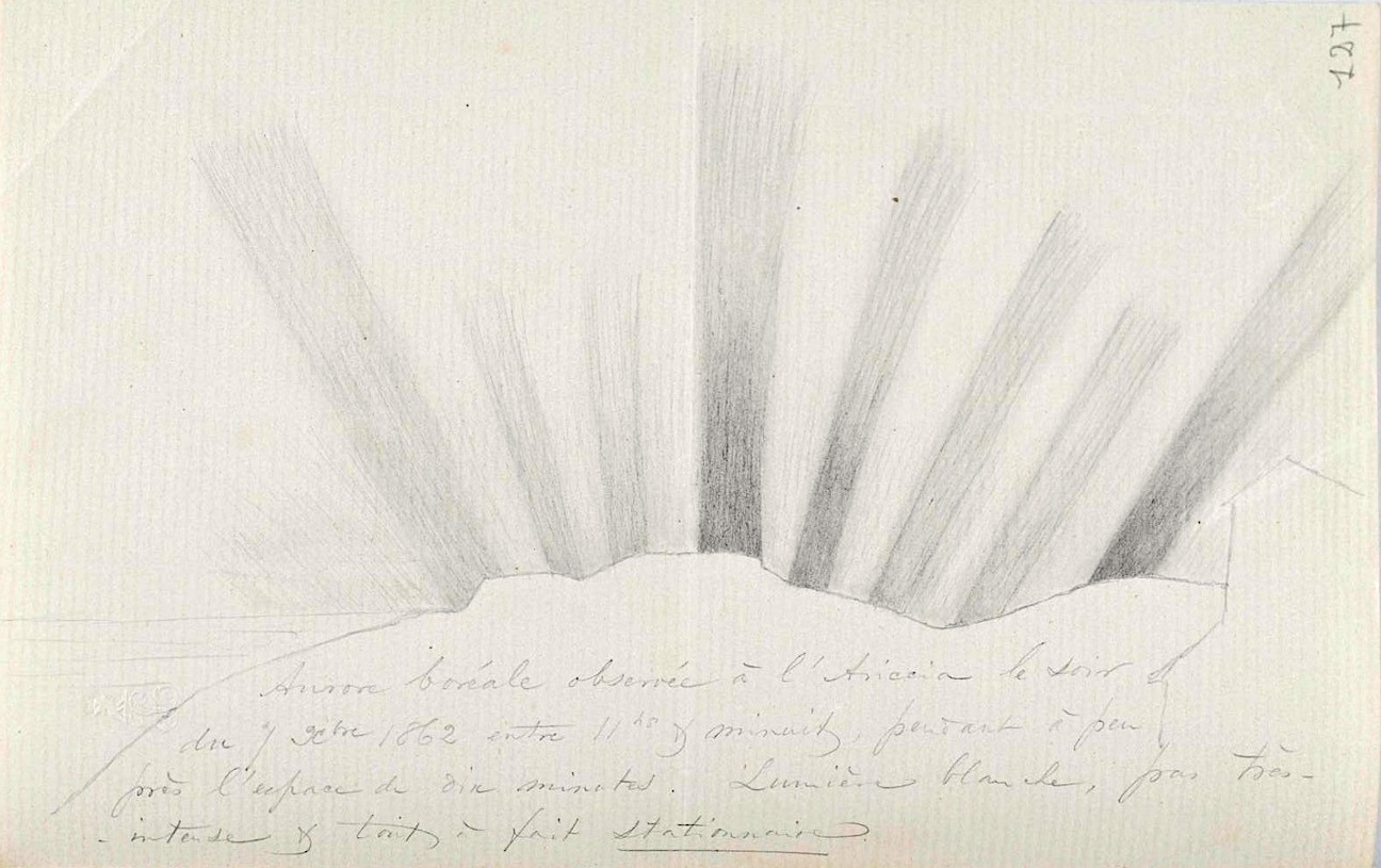 Nel 1862 il gesuita Carlo Lavaggi informava P. Angelo Secchi, direttore dell’Osservatorio del Collegio Romano, dell’aurora boreale vista ad Ariccia. Corredava la lettera con un dettagliato disegno in cui è visibile l’orizzonte con le sagome delle case. A questo link: https://bit.ly/3QMaeEP la digitalizzazione e trascrizione integrale della lettera che fa parte di un fondo di quasi 8000 lettere scambiate tra i più importanti scienziati del XIX secolo, in contatto quasi quotidiano con l’astronomo gesuita Secchi.