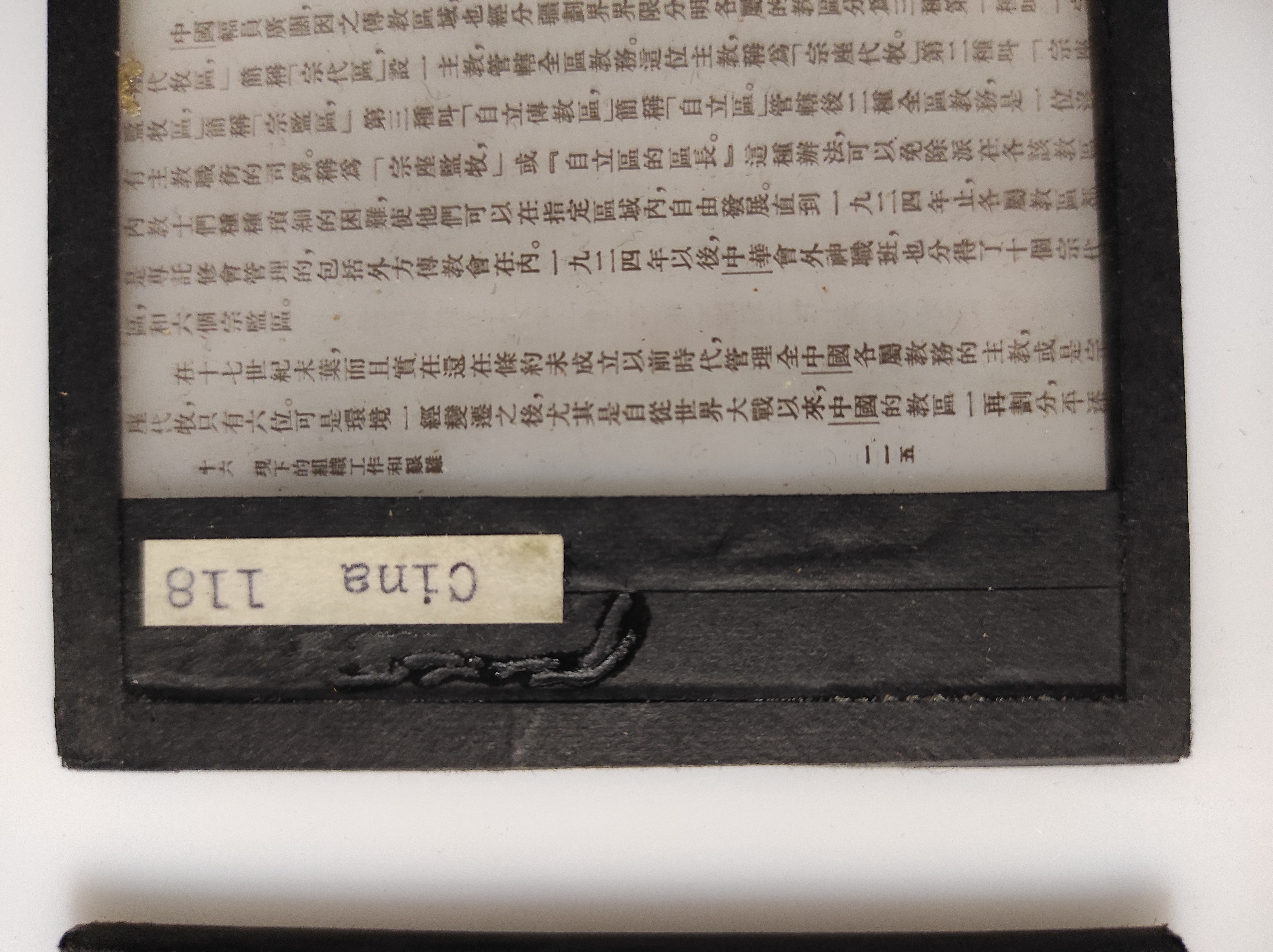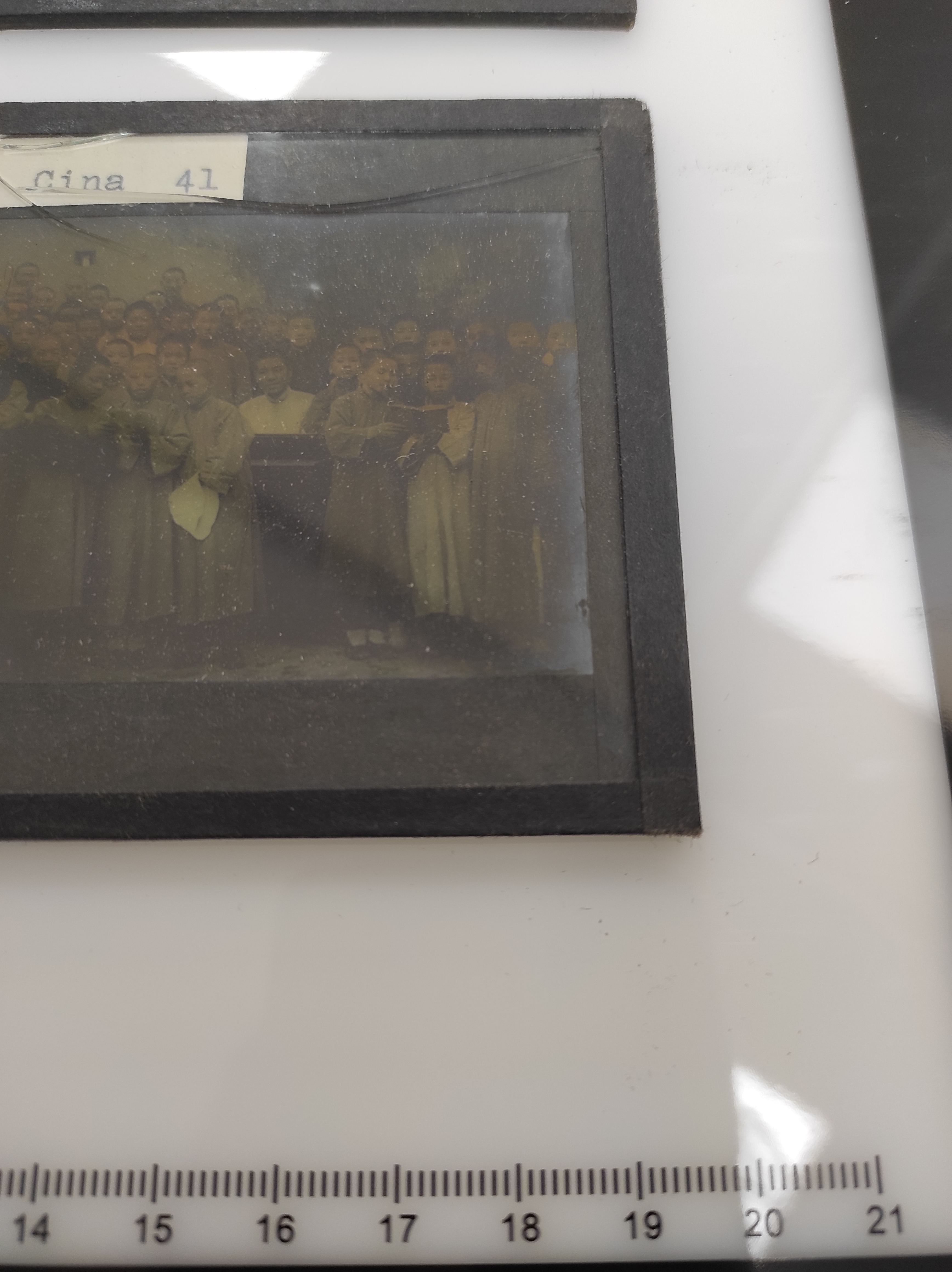 Il fondo di P. Pasquale D’Elia S.I. comprende una raccolta di 88 diapositive su lastra di vetro alla gelatina ai sali d’argento conservate all’interno di un contenitore in legno non idoneo alla conservazione.