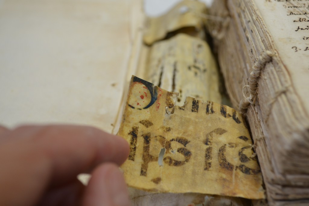 P. Ignacio Iparraguirre Aldaondo SJ (1911-1973) intento a leggere un resto di scrittura difficilmente visibile nel dorso del codice FC 1055 scrisse: In dorso posteriori pergamenae, aliqua verba sunt quae legi non possunt, nam atramentum fere evanuit et tantum remanent obscurissima signa1.