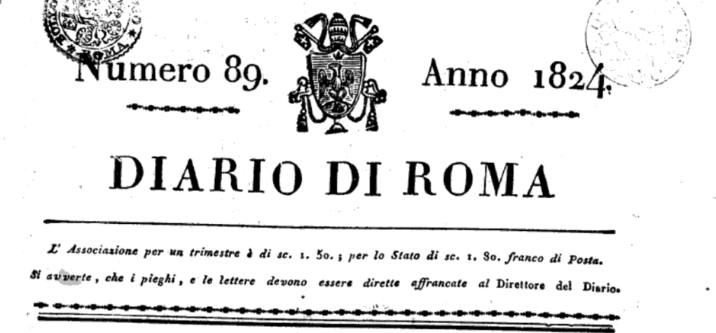 Alle ore quattro pomeridiane del di corrente [2 novembre] il Regnante Sommo Pontefice si compiacque di manifestare uno de’ più degni e sinceri tratti di quel vivissimo interesse di cui sempre si è conosciuto essere animato il di lui spirito per l’ aumento della religiosa e scientifica educazione della Gioventù; essendosi degnata la prelodata Santità Sua di portarsi in treno alla chiesa di S. Ignazio, in cui dopo avere orato per qualche tempo si condusse nella gran sala del Collegio Romano ad ascoltare l’orazione latina, che suol farsi per lo felice inauguramento degli studi nel principio di ogni anno scolastico. L’orazione fu recitata con universale e veracissima lode dal Rev. P. Carlo Grossi della Compagnia di Gesù Prefetto delle Scuole del nominato Collegio.